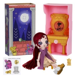 Includes: 1 x 15cm Soft Rag Doll (with Hair), 1 x Soft Goods Character Specific Outfit, 1 x Chair, 1 x Brush, 1 x Statue of Prince Eric, 1 x Sticker Sheet, 1 x Sleeve with iconic character scene, 1 x Vanity with surprise compartment.