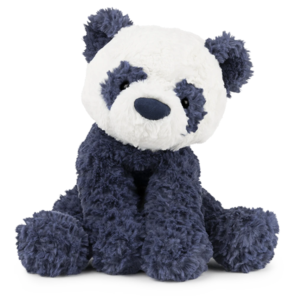 This Cozys Panda sits at 25cm and is crafted from premium blue and white fabric.