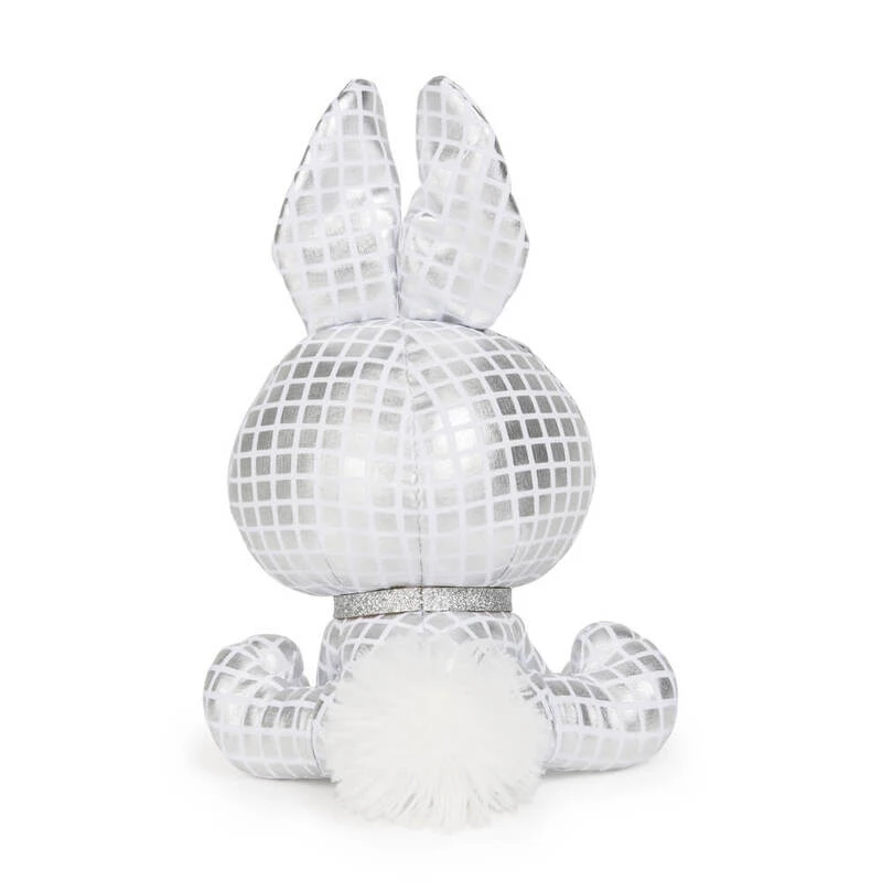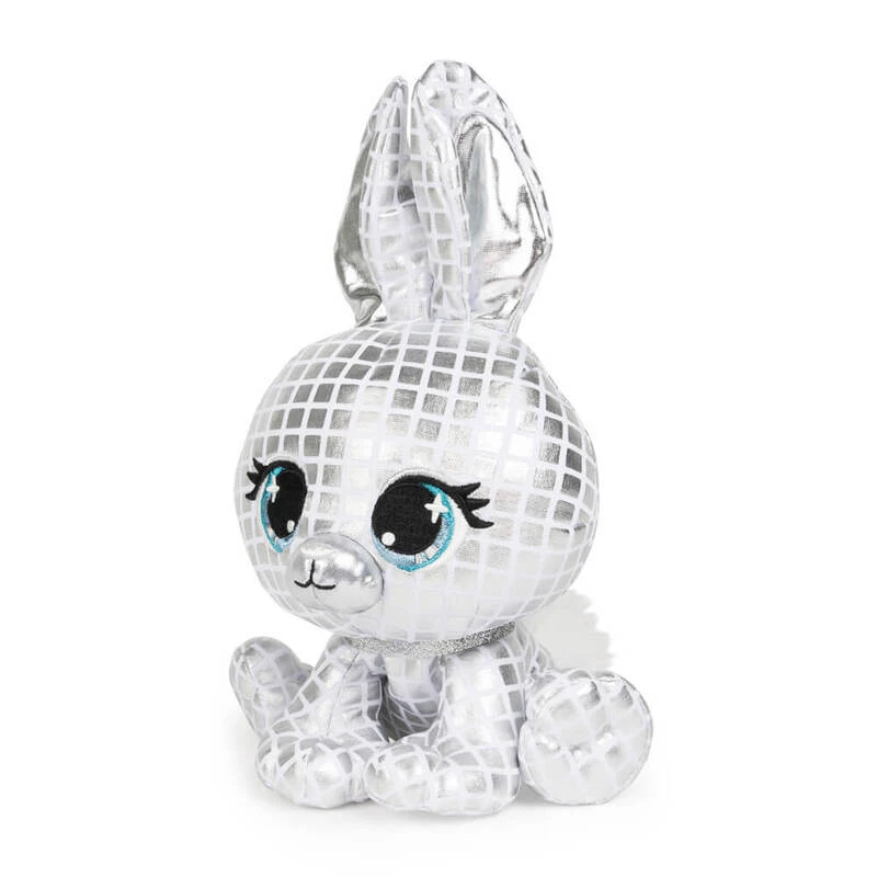 LIGHT UP THE FLOOR! This special edition B.G. Night knows how to get the party started in her disco ball-inspired look. This fun and funky bunny is dressed in silver metallic fabric with platinum accents and accessorized with a silver glitter collar that matches her platinum eyeshadow, making her blue eyes pop! You can find her zipping around Brooklyn in her roller skates when she isn’t lighting up the dance floor!