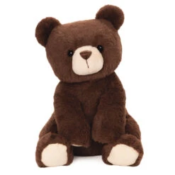 This 33cm seated dark brown bear has fuzzy, huggable plush on a classic teddy bear design, with soft paw pads and muzzle in contrasting beige.