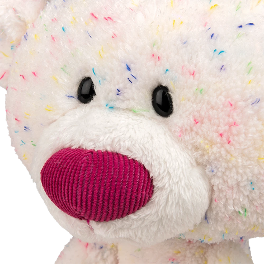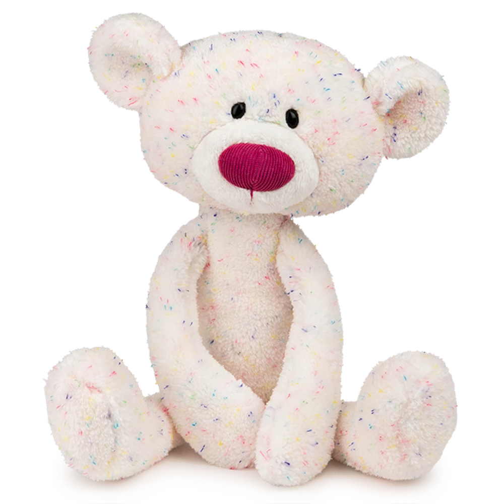 This adorable Toothpick Bear features a slender, soft body and modern design with a sweet expression and super-soft confetti patterned white fur!