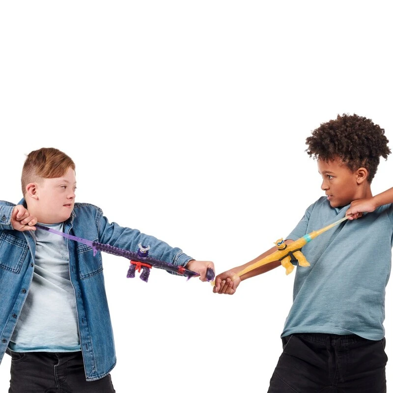 Prepare yourself for some Powered-up action! Heroes of Goo Jit Zu Goo Shifters are here! Power-up and battle straight out of the box with this awesome Versus Pack! This Goo jit Zu Versus Pack contains two Exclusive Goo Shifters Heroes: Liquid Gold Pantaro and Shadow Orb Scorpius. Crush their Core to activate their “Goo-formation”! Watch as the Goo inside their bodies changes color before your eyes to release their inner power! Squish and squeeze these exclusive Figures and make them battle. Liquid Gold Pantaro is Super Goopy and Shadow Orb Scorpius is Super Squishy. Who will win this Powered-up contest? Heroes of Goo Jit Zu Goo Shifters are a Gooey way for kids to play with no mess. Squish and Stretch your Liquid Gold Pantaro and Shadow Orb Scorpius up to three times their size. Best thing is they will always come back to their original shape! As well as these two exclusive Versus Figures there are 7 Hero Packs figs to collect all with unique Goo fillings and “Goo-formations! The Heroes of Goo Jit Zu need YOU! Transform the Goo and power-up with the Goo Shifters!