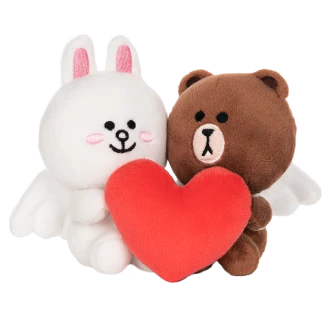This cute Line Friends plush features Cony and Brown with cupid wings, holding onto a bright red love heart.
