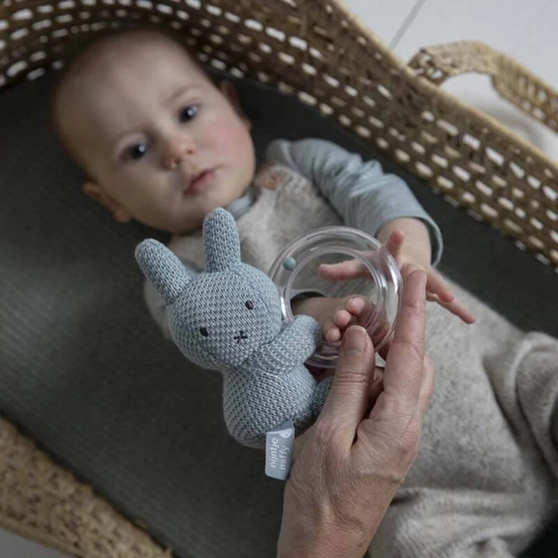This beautifully designed Miffy ring rattle is the perfect size for little hands to grasp. Featuring baby-safe embroidered fabric and a clear plastic ring with pink beads inside, this tactile and engaging ring rattle adds visual stimulation whilst encouraging hand-eye coordination and aiding in auditory development for little ones.