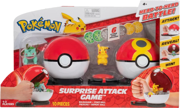 Includes: Bulbasaur + Poke Ball, Pikachu + Repeat Ball and 6 attack discs.
